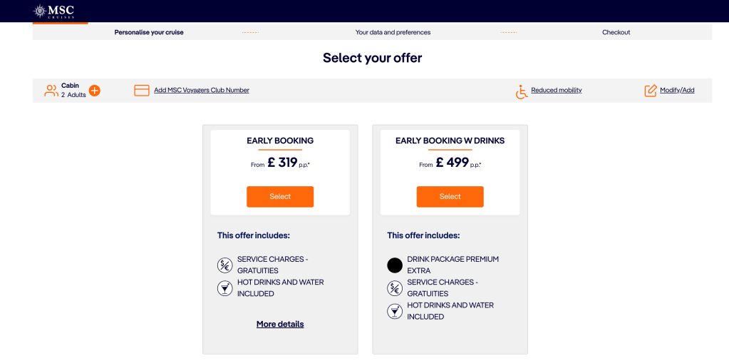 ▪ MSC郵輪 – 英國或愛爾蘭官網小費已包含?