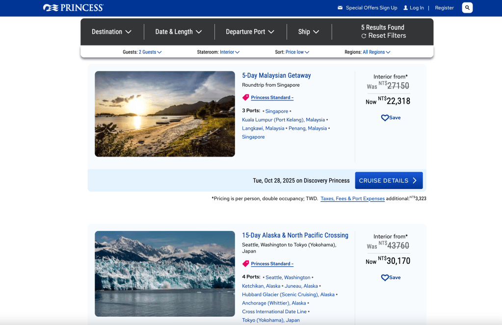 ▪ 公主郵輪(Princess Cruises)- 台灣分公司訂購更划算?