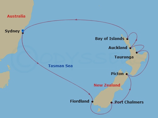 | 深度巡遊紐西蘭 | 公主郵輪(Princess Cruises)提供約兩週14晚的雪梨往返行程,從北島到南島,涵蓋米佛等多個港口。 |